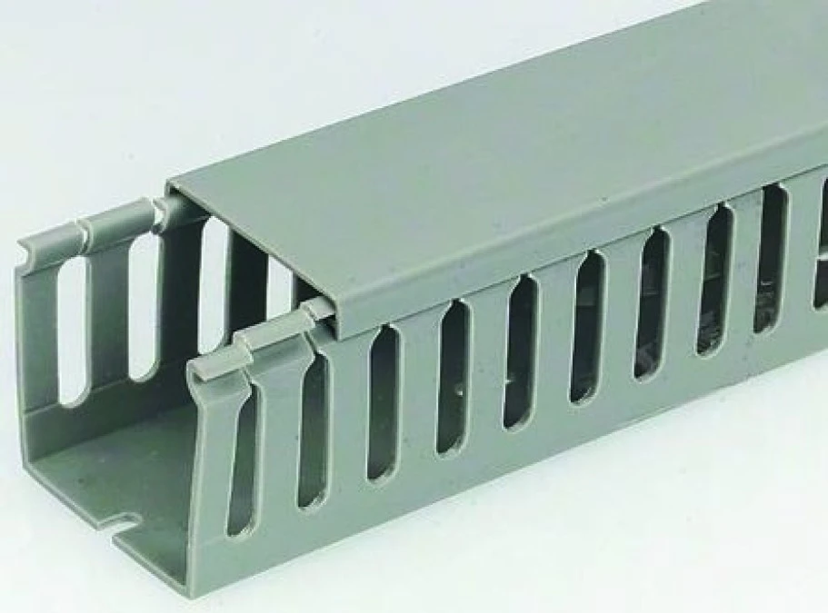 6. Koryto z rowkami do kabli Szary PVC Otwarty Koryto panelowe z otworami 100 mm 40mm 2m RS PRO 1253.41
