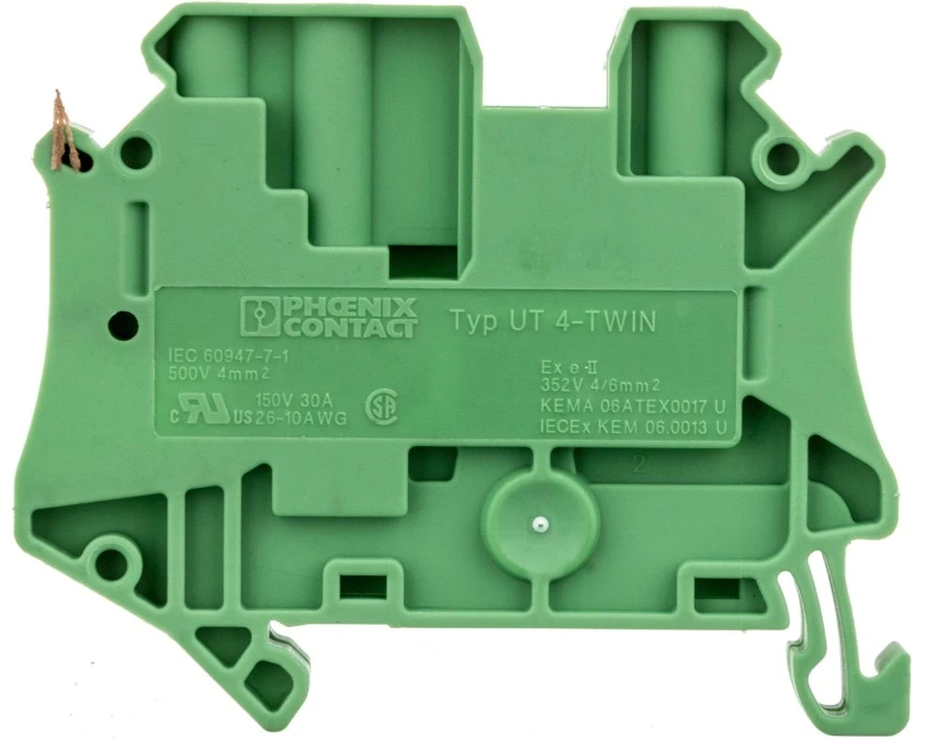 14. Złączka szynowa 3-przewodowa 4mm2 zielona Ex UT 4-TWIN GN 3044367 /50szt./ 407.75