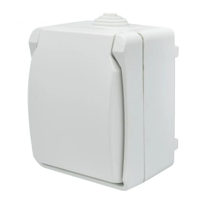 2. Gniazdo pojedyncze z uziemieniem natynkowe z klapką Aqua Plus IP44 białe 40224 8.34