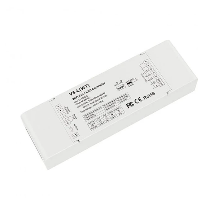 13. Sterownik LED Skydance 5w1 (WiFi) - Mono /CCT /RGB /RGB+CCT - 12-48V DC 30A - Alexa Tuya - V5-L(WT) 158.25