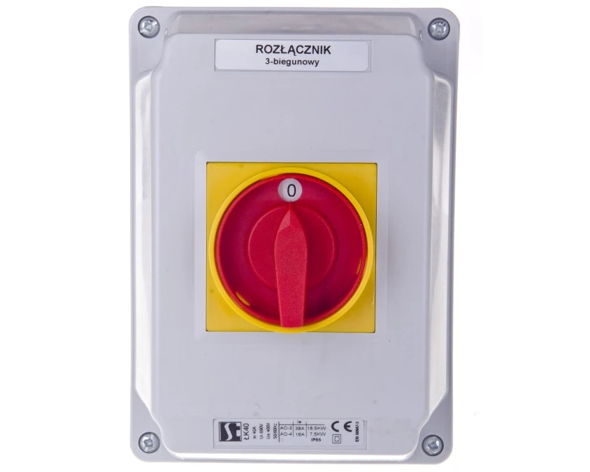 Łącznik krzywkowy L-0-P 3P 40A w obudowie ŁK40-3.8368OB3