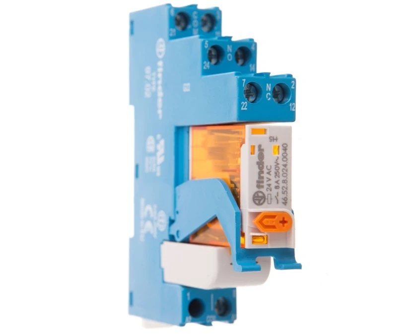 6. Moduł interfejsowy 15,8mm, 2P 8A 24V AC, styki AgNi, wskaźnik zadziałania, blokada, przycisk testowy 4C.52.8.024.0060SPA 91.17