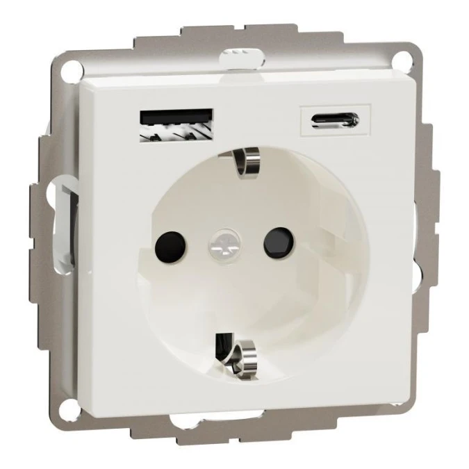 17. Merten, gniazdo Schuko z ładowarką USB A+C 3A, biel polarna 384.49