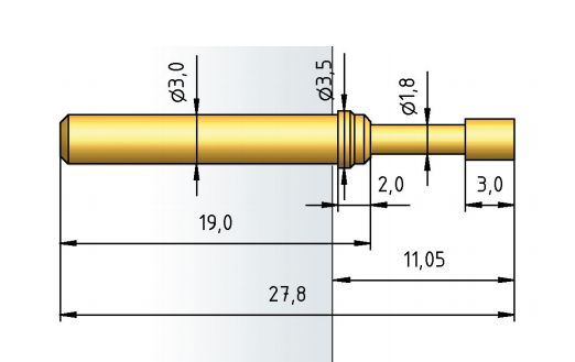 Igła testowa 1041-F-1.5N-AU-2.3-MH5.5, raster 4,50 (177 mil)