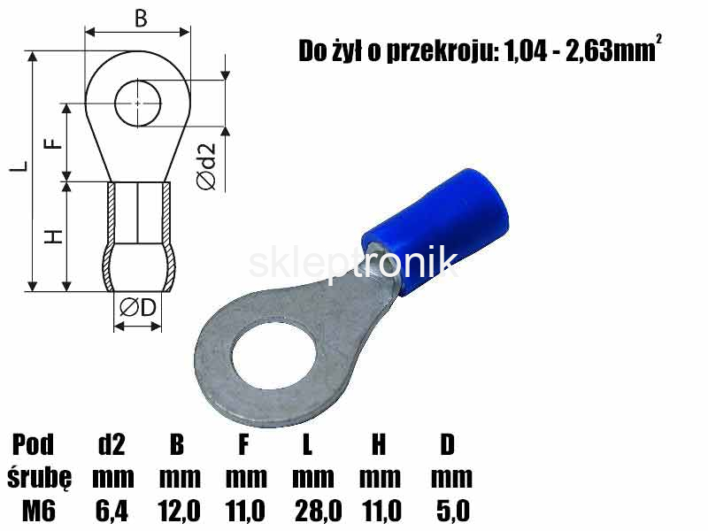 6. Konektor M6 1-2,5mm niebieski 10szt 1.70