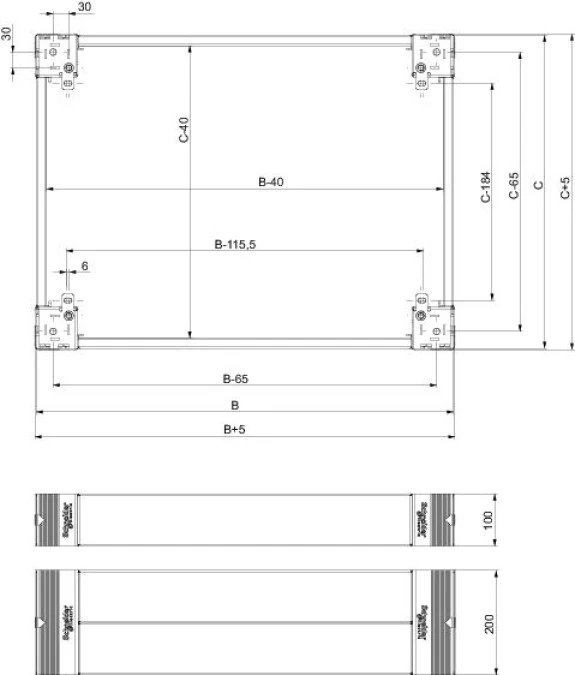 1. Spacial SF/SM płytka zaślepiająca w otworami, 200x800mm, na zawiasach NSYMUCH208 315.52