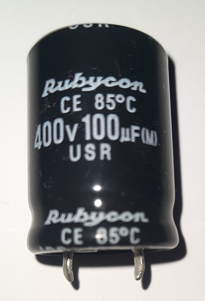 1. Kondensator elektrolityczny 100uF 400V 85' 22x30mm SNAP-IN RUBYCON cena netto 5.00