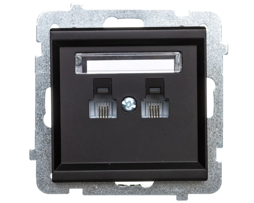 SONATA Gniazdo telefoniczne podwójne RJ11 równoległe czekoladowy metalik GPT-2RR/m/40