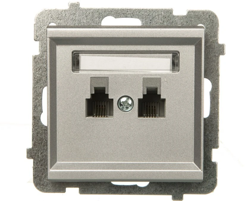 SONATA Gniazdo telefoniczne podwójne RJ11 równoległe srebro mat GPT-2RR/m/38