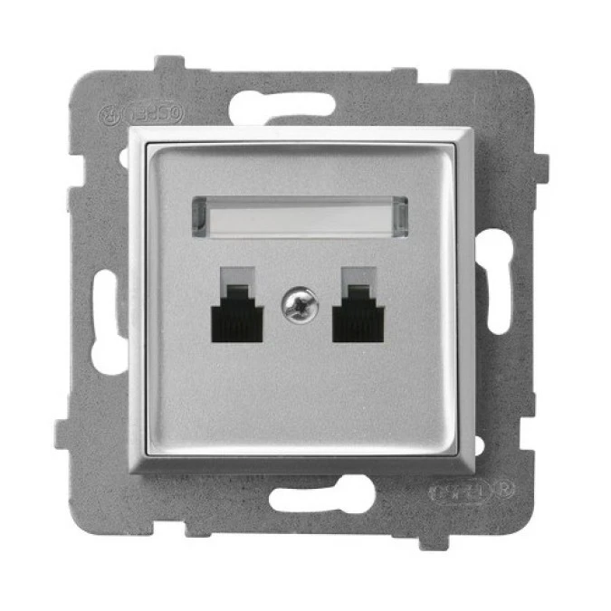 ARIA Gniazdo telefoniczne podwójne równoległe srebro GPT-2UR/m/18 OSPEL