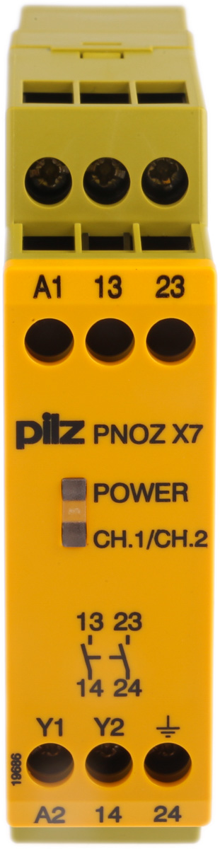 Przekaźnik bezpieczeństwa, kat. bezp.: 2, SIL: 3, PNOZ X7, styki bezp.: 2, Uz: 24 V ac/dc, Pilz
