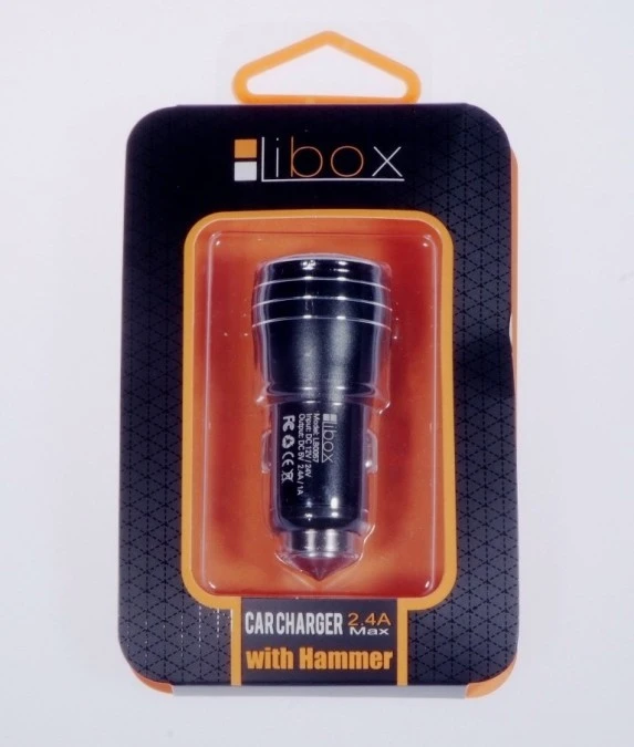 9. Ładowarka samochodowa z młotkiem 2xUSB 2,4A czarna LB0057 LIBOX 12.05