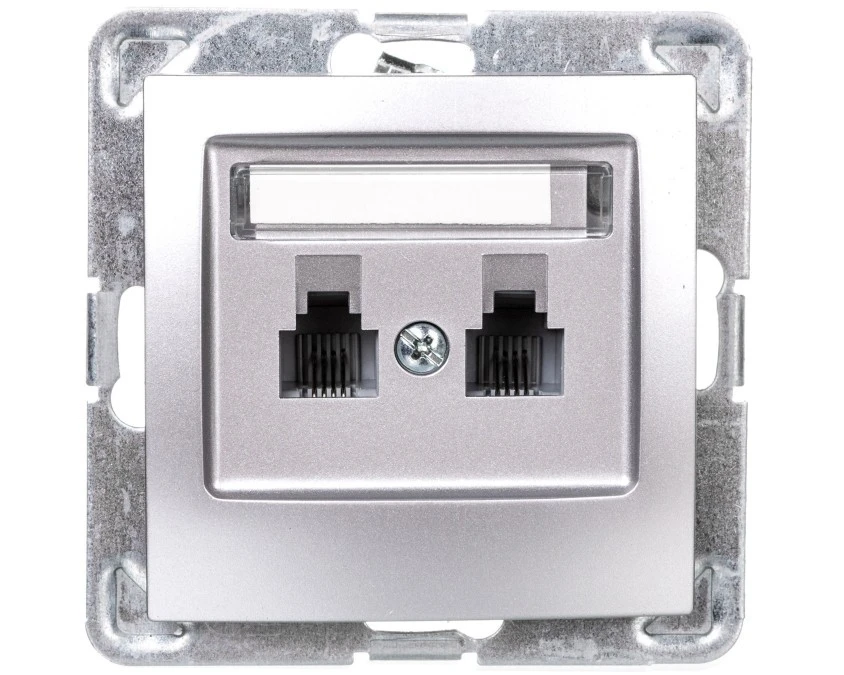 IMPRESJA Gniazdo telefoniczne podwójne RJ11 równoległe srebrne GPT-2YR/m/18