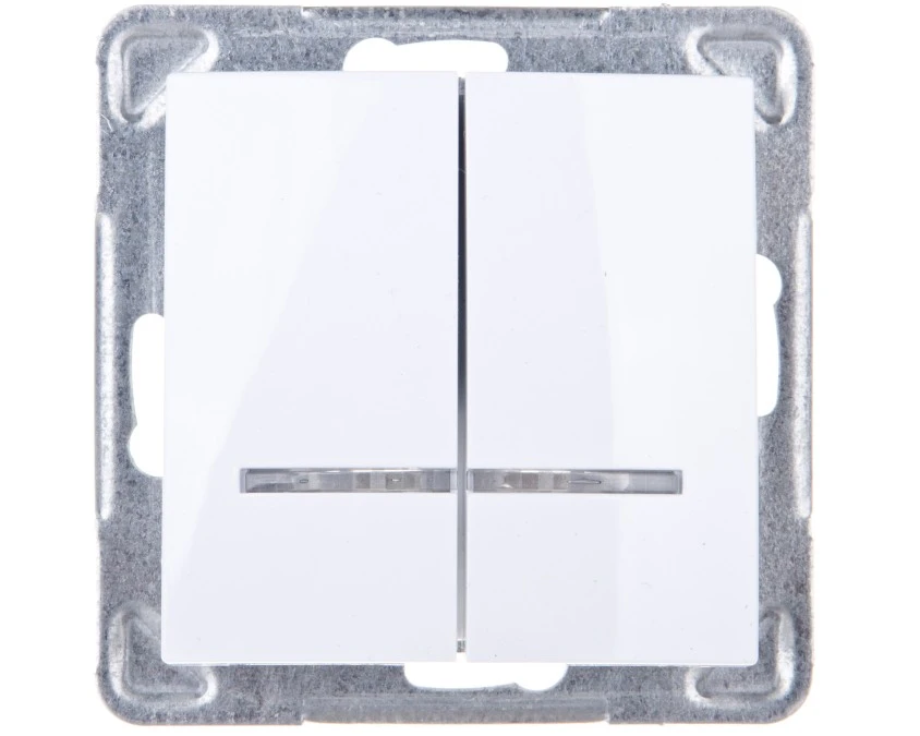 IMPRESJA Wyłącznik podwójny świecznikowy podświetlany biały ŁP-2YS/m/00 OSPEL