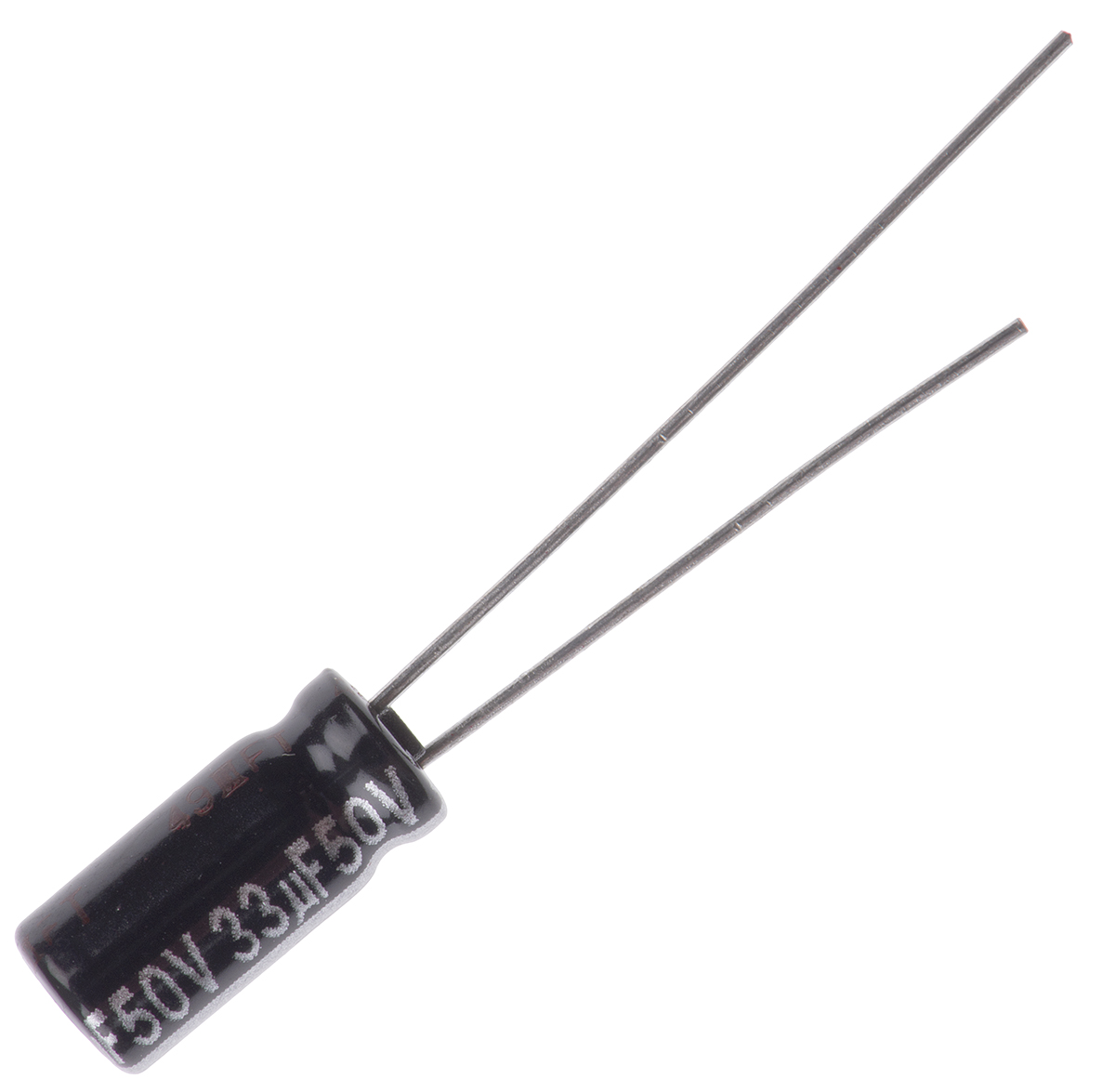 6. Kondensator 33μF 50V dc Radialny, Otwór przelotowy Panasonic roztaw: 2mm 5 (Dia.) x 11mm 0.39 x200