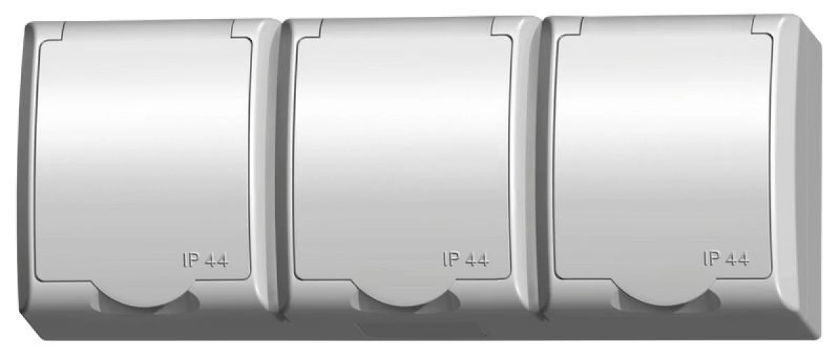 8. FALA Gniazdo hermetyczne potrójne z/u Schuko IP44 klapka biała GNH-3HS/00/w 53.87