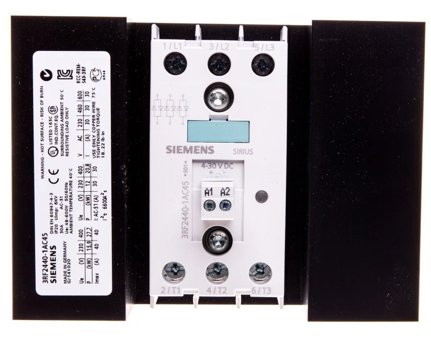 9. Siemens 3RF2430-1AC45 Przekaźnik półprzewodnikowy Przełączanie w punkcie zero 3 NO 30 A 1 szt. 1069.00