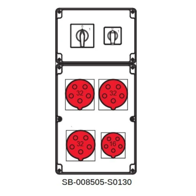Rozdzielnica 0-1(32A) 0-1(16A) 3x5x32A 1x5x16 INA=32A IP54 SB-008505-S0130-54