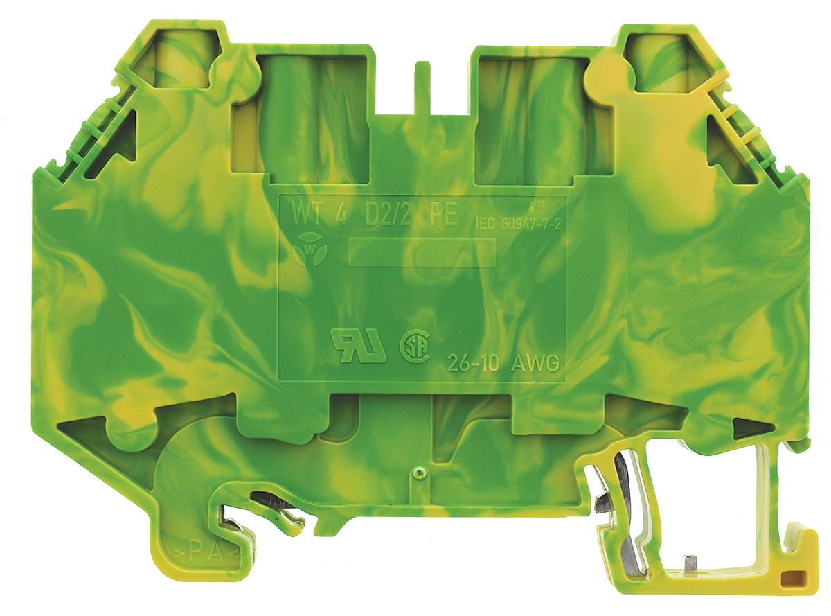 3. Listwa zaciskowa uziemienia Wieland poziomy: Pojedynczy 26 → 10AWGŚruba WT 4 D2/2 PE raster: 6mm 500 V 33.66 x10