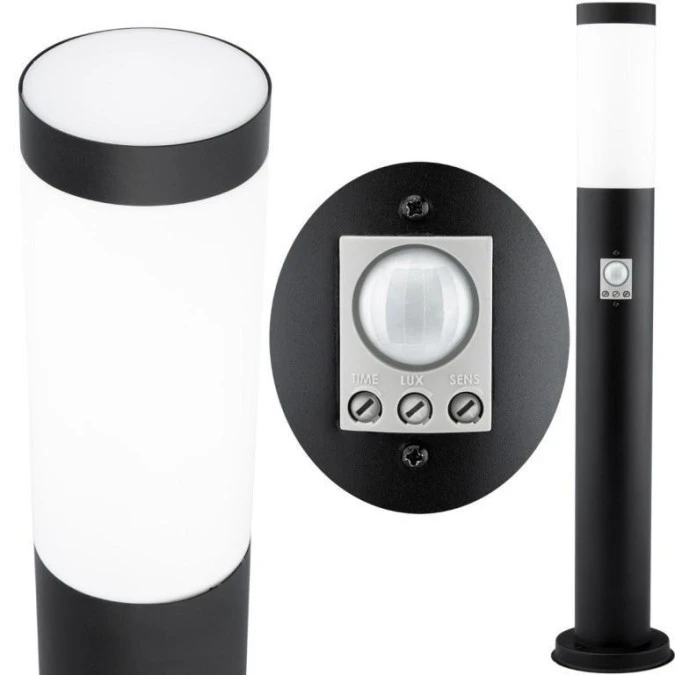 4. Lampa Ogrodowa Zewnętrzna E27 CZARNY SŁUPEK 65cm z Czujnikiem Ruchu i Zmierzchu 93.18