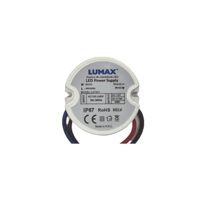 13. Zasilacz do oświetlenia LED montażowy IP44 45W, 12V, 3,75A, 50x22mm - do Puszki 70.74
