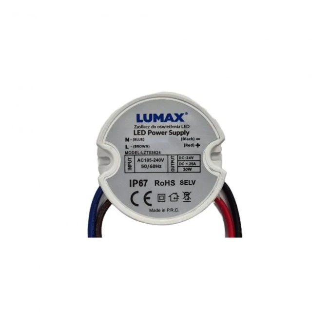 Zasilacz do oświetlenia LED montażowy IP44 30W, 12V, 2.5A, 50x22mm - do Puszki LZT038