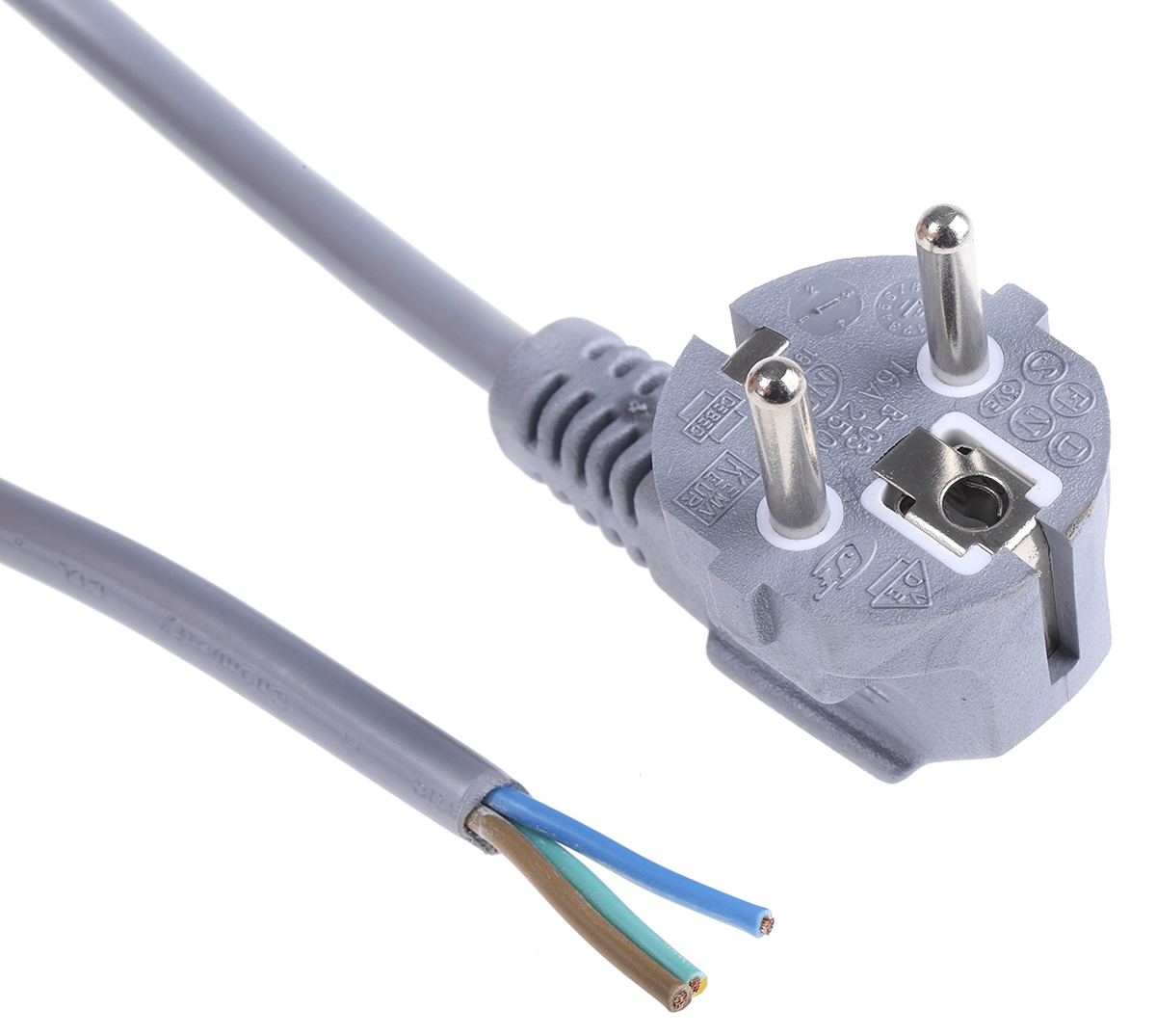 Przewód zasilania złącze A: CEE 7/7, złącze B: Bez zakończenia 2.5m 16 A 250 V Szary