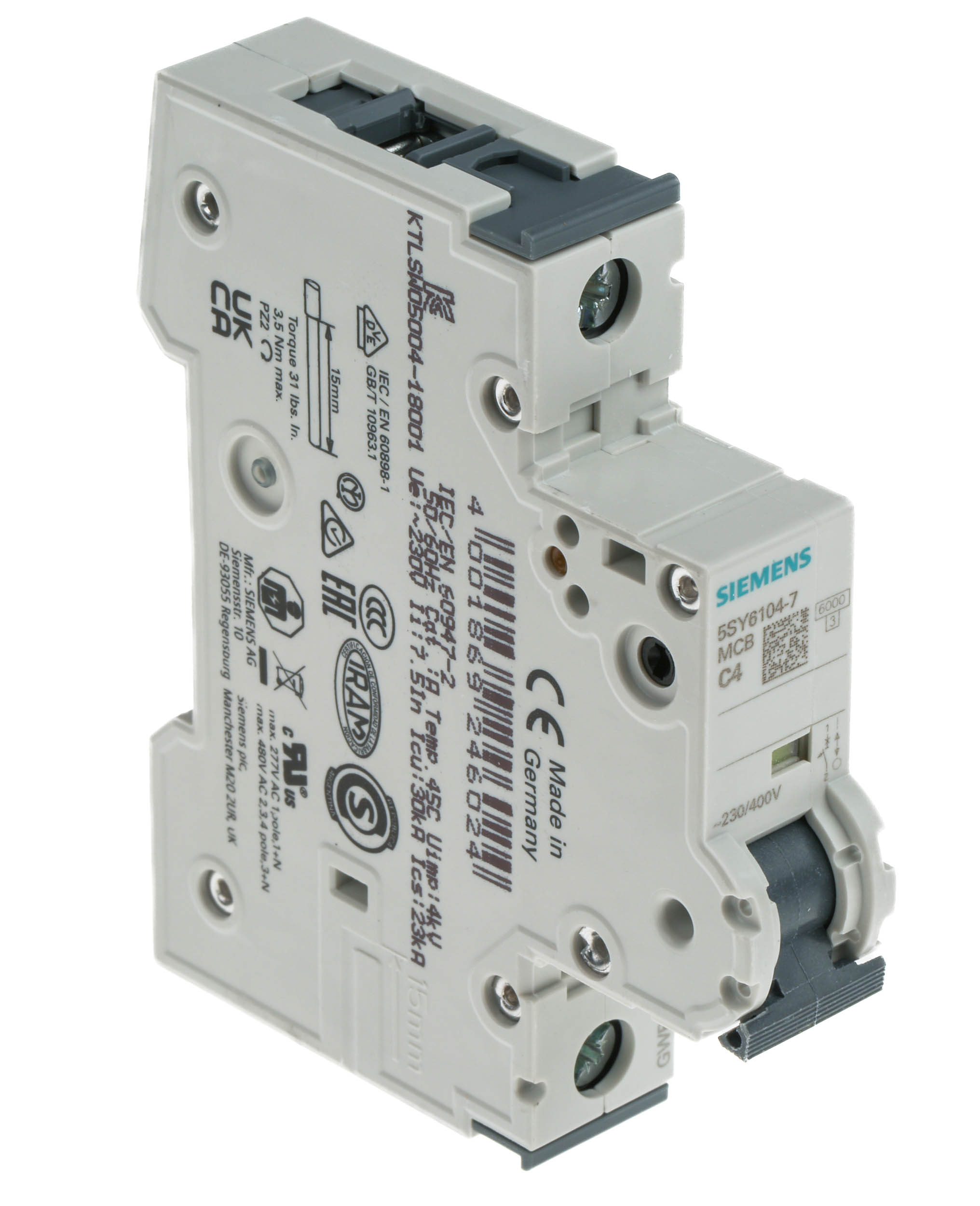 Wyłącznik nadprądowy MCB, Typ C, 1-biegunowy, 4A, 230V, 72V, na szynę DIN, Siemens, 5SY6