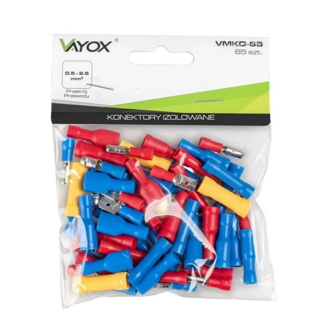 1. Konektor izolowany okrągły wtyki + gniazda + łączniki zestaw 65 szt. VMKO-65 Vayox 13.36