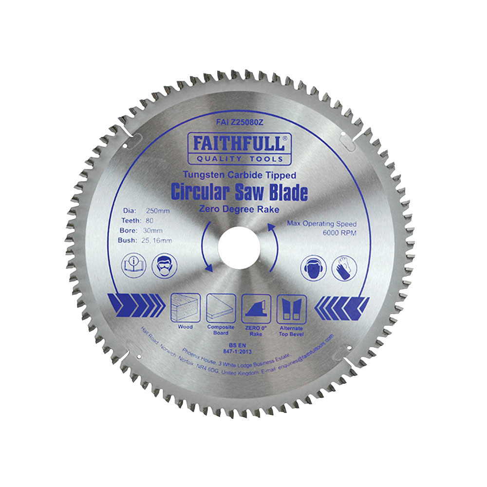 7. Faithfull FAIZ25080Z TCT Circular Saw Blade Zero Degree 250 x 30mm x 80T 316.53