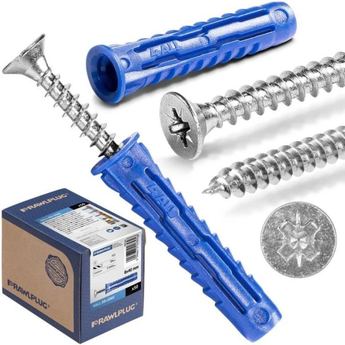 Kołek uniwersalny Rawlplug 8x40 z wkrętem 5x60 4ALL-08+5060 – 50 szt.