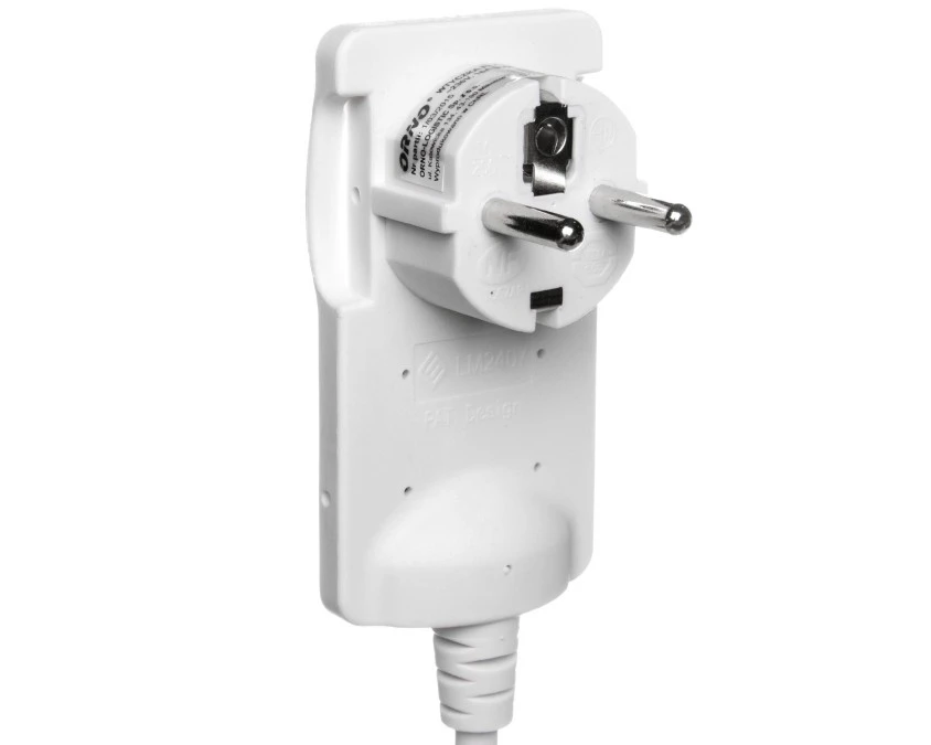 9. Wtyczka płaska kątowa 2P 16A 250V z przewodem 1,5m, biała OR-AE-1312/W 24.51