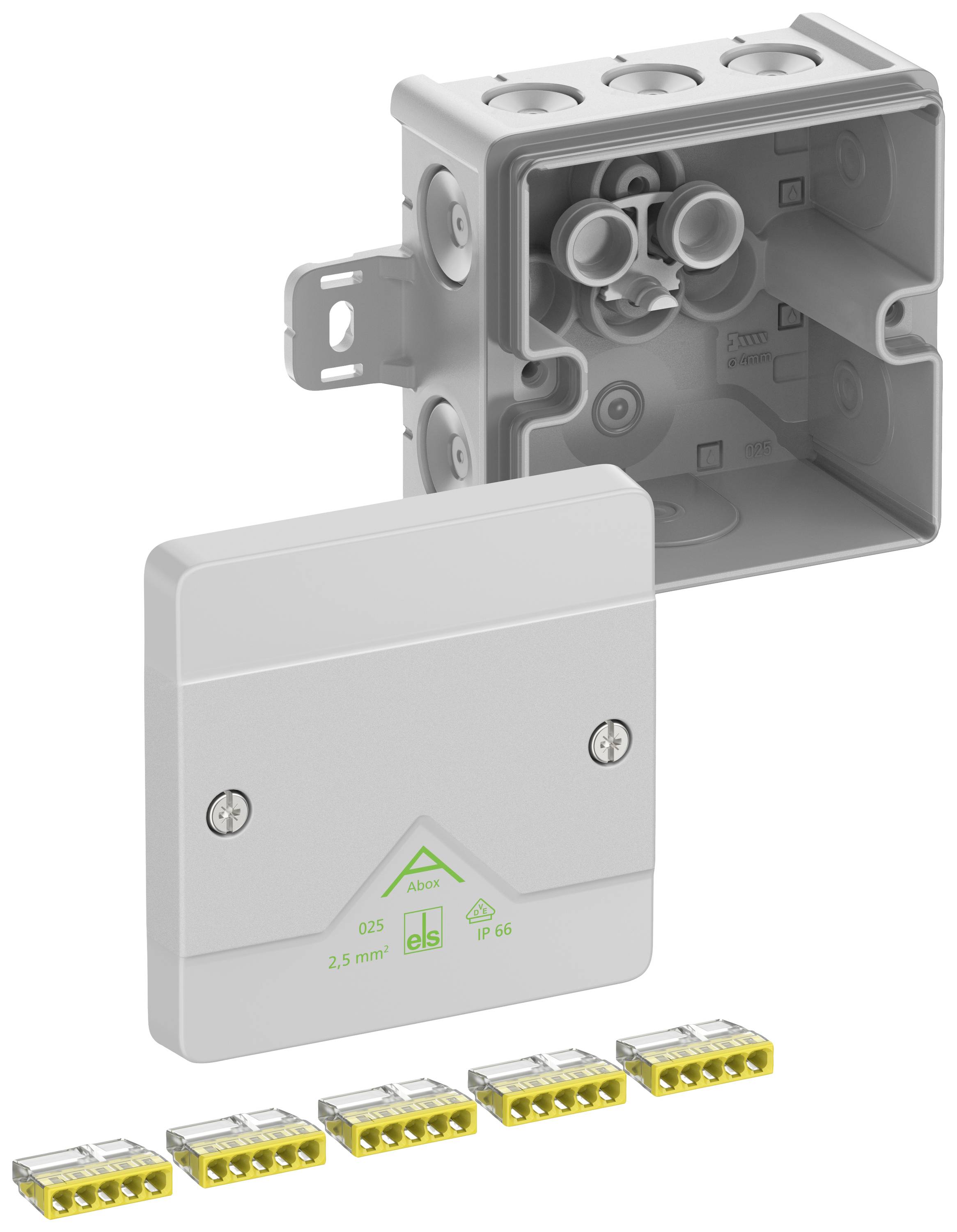 4. Puszka instalacyjna Spelsberg Abox 025 AB-L, IP65, (D x S x W) 80 x 80 x 52 mm, szary, 1 szt. 30.19