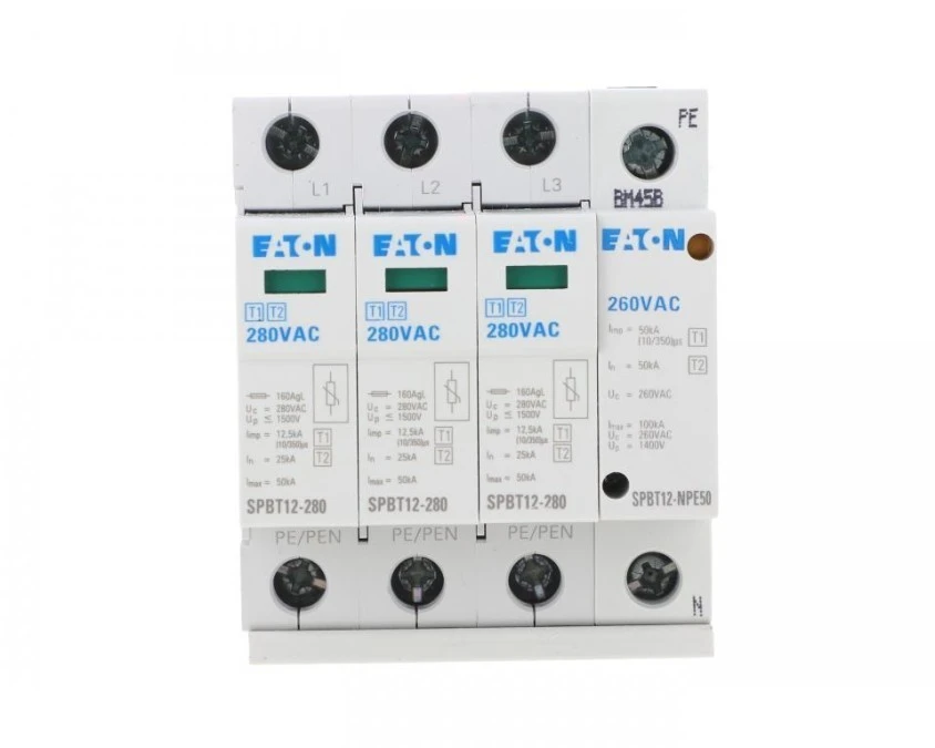 4. Ogranicznik przepięć SPD 3-fazowy B+C (Typ 1+2) 4P 12,5kA + 25kA/50kA warystorowy EATON 481.00