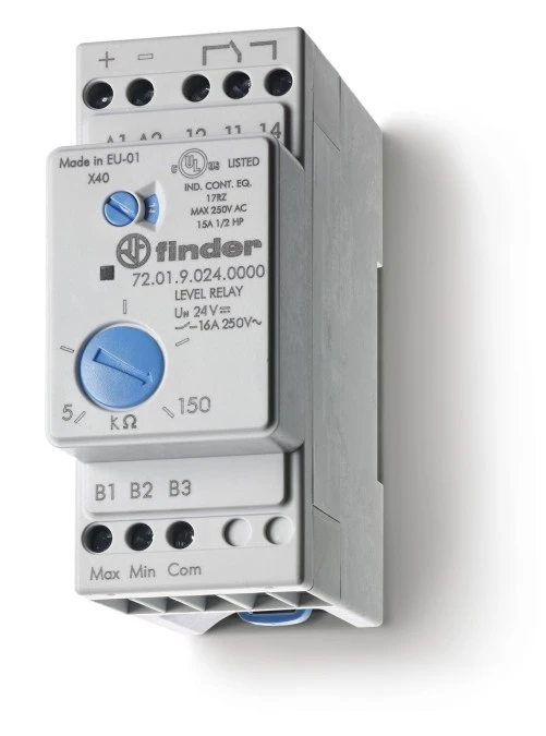 Przekaźnik kontroli poziomu cieczy (przewodzących) funkcja opróżniania/napełnienia, czułość nastawna 24V AC 72.01.8.024.0000