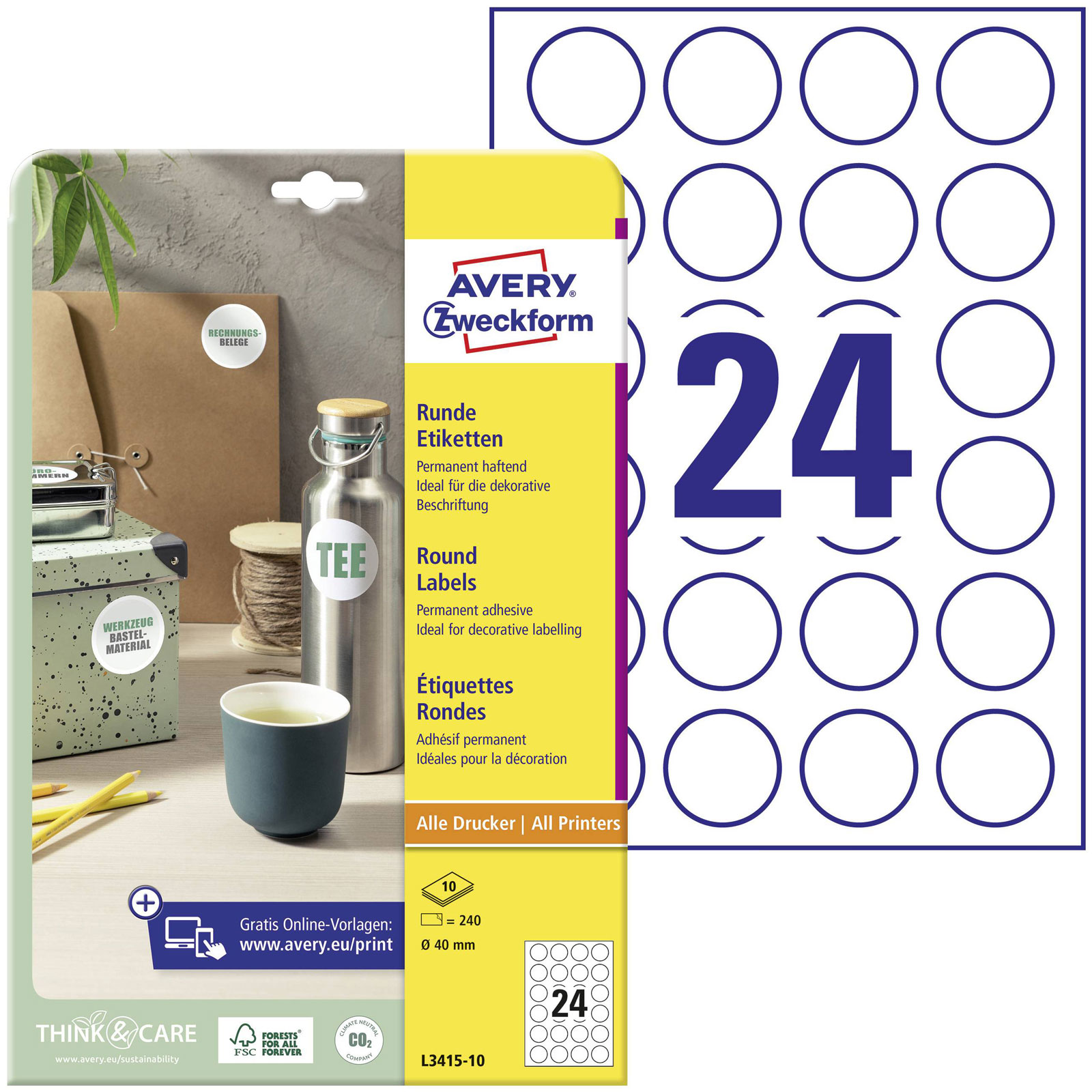 12. Avery-Zweckform L3415-10 All-purpose labels 40mm white paper permanent 240pcs 35.38