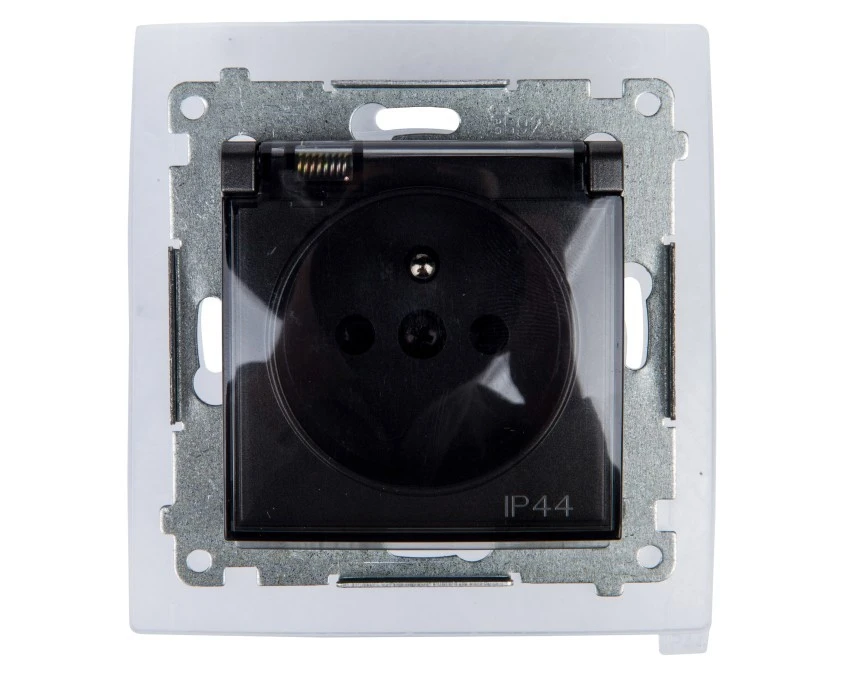 Simon 54 Gniazdo bryzgoszczelne z/u IP44 z klapką transparentną antracyt DGZ1BZ.01/48A