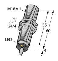 Turck Czujnik indukcyjny podtynkowy PNP, Przełącznik BI5U-M18M-VP4X