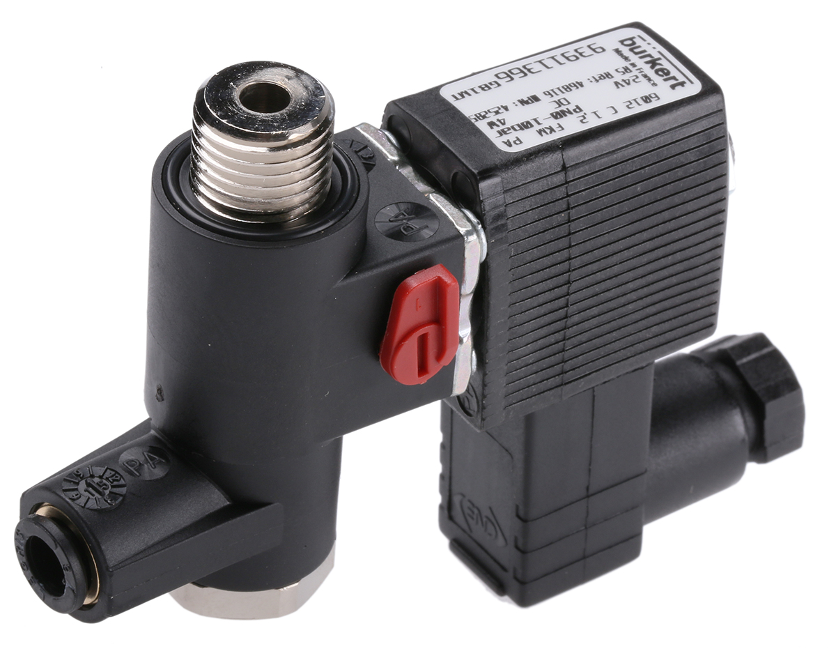 4. Zawór elektromagnetyczny 24 V DC Burkert 3-drogowy G 1/8 cala żeńskie 1/8cal NC 393.56