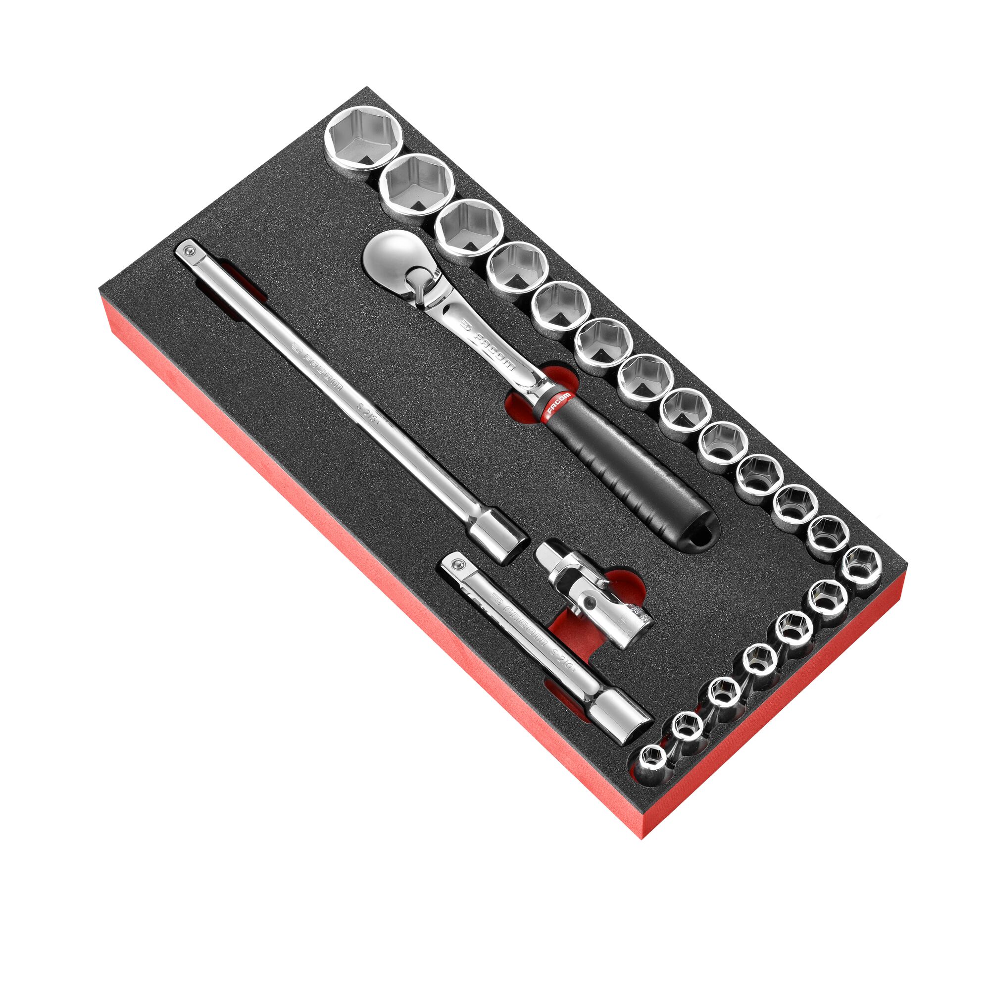 Zestaw nasadek rozmiar napędu 1/2 cala elementy: 26 Facom typ napędu Kwadratowy gniazdo 8 , 9 , 10 , 11 , 12 , 13 , 14