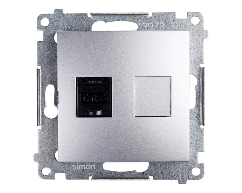 10. Simon 54 Gniazdo komputerowe pojedyncze RJ45 kat.6 z przesłoną srebrny mat D61.01/43 86.59