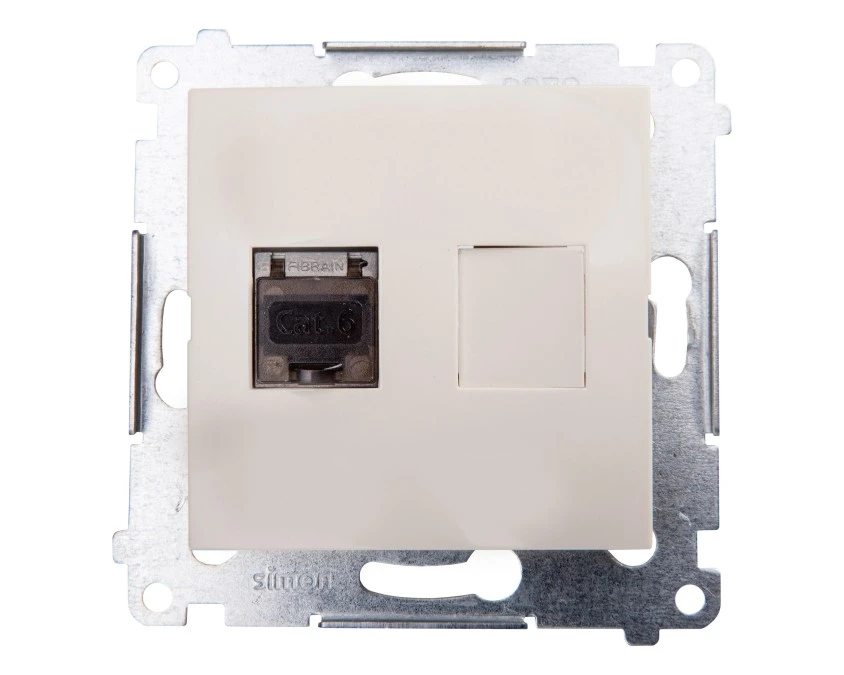 SIMON 54 Gniazdo komputerowe RJ45 kremowe kat.6 ekranowane z przesłoną przeciwkurzową D61E.01/41 KONTAKT SIMON
