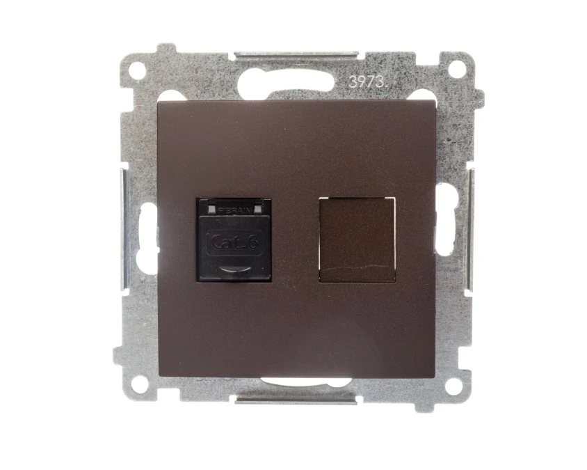 SIMON 54 Gniazdo komputerowe RJ45 kat.6 ekranowane z przesłoną przeciwkurzową brąz mat D61E.01/46 KONTAKT SIMON