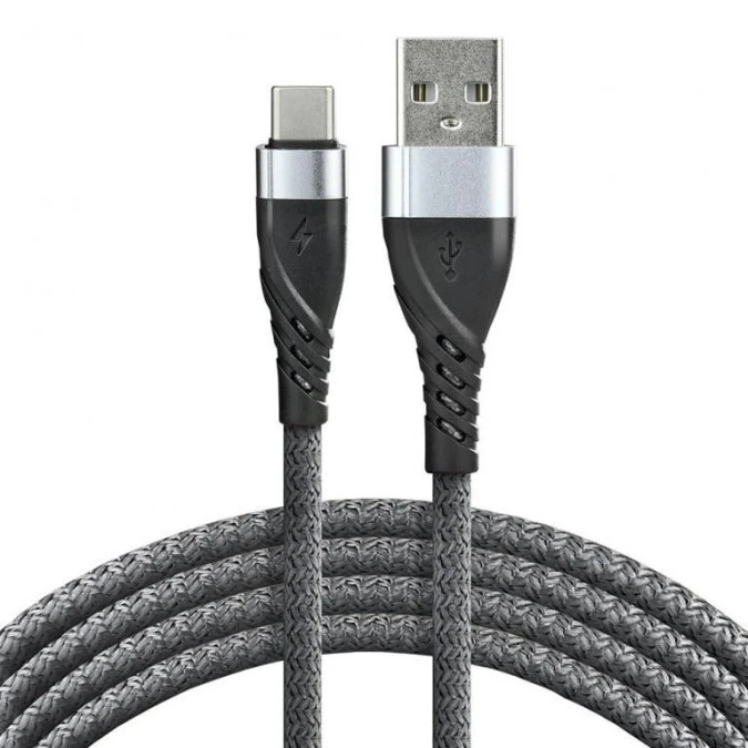 6. Kabel przewód pleciony USB - USB-C / Typ-C everActive CBB-2CG 200cm z obsługą szybkiego ładowania do 3A szary 12.15