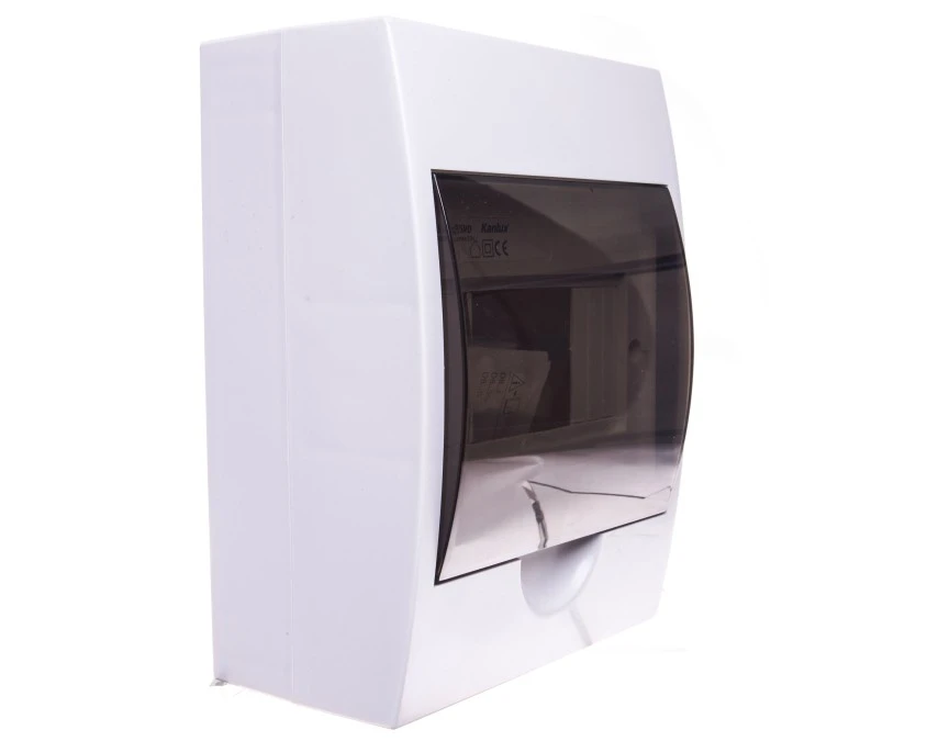 4. Rozdzielnica modułowa tworzywo 1x6 podtynkowa IP40 IK06 N+PE II klasa drzwi transparentne szare DB106F 1X6P/FMD biały 3841 49.20