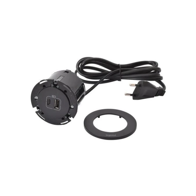 Incara Gniazdo Meblowe Disq 80 2P+Z Usb A+C Wyjście Kablowe 2,0 M Czarny 654707