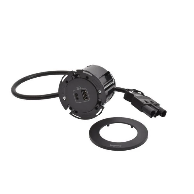 Incara Gniazdo Meblowe Disq 60 Usb A+C Z Pokrywą 2,0 M Czarny 654733
