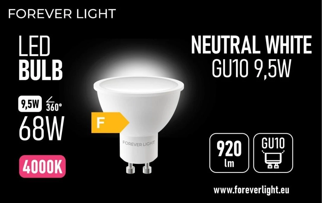 4. Żarówka LED GU10 9.5W 920lm 4000K klasa F Forever Light 6.10