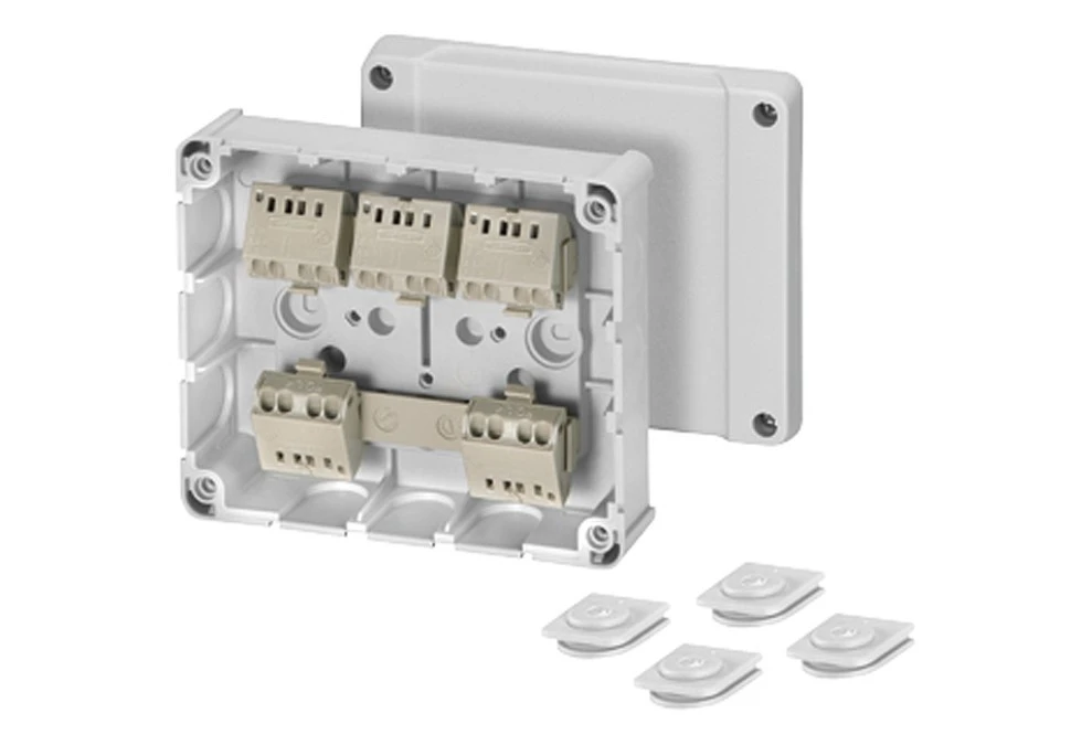 4. Puszka do kanałów i rur do instalacji wewnętrznych IP54 szara z zaciskami bezśrubowymi 5-biegunowa 2,5 mm2 DPC 9225 60000765 129.22
