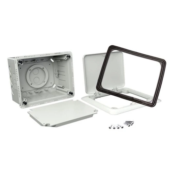7. Puszka uniwersalna podtynkowa do dociepleń z drzwiczkami 156x196x86mm bezhalogenowa IP30 szara KOPOS 111.78